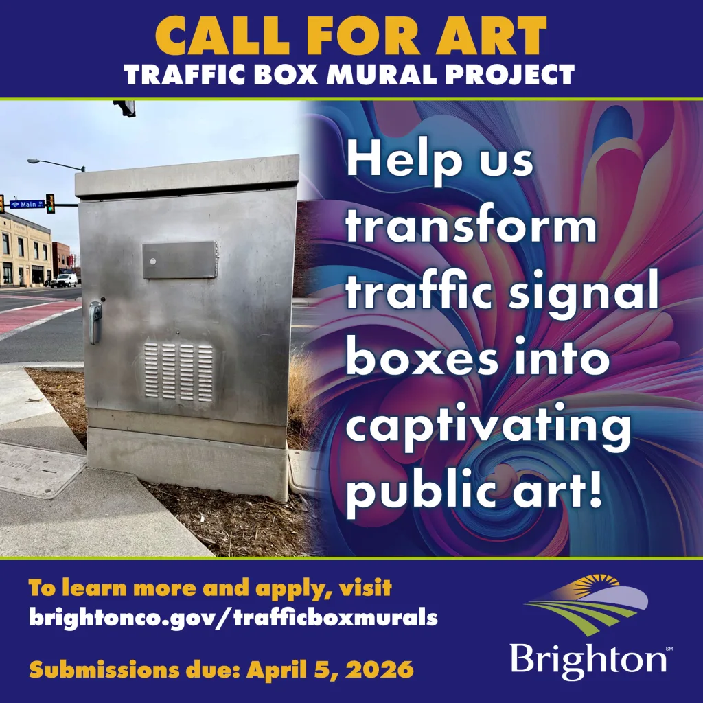 Calls for Art for the City of Brighton 2026 Traffic Box Mural Project! The City of Brighton invites artists to embark on an exciting endeavor—transforming traffic signal boxes into captivating public art installations across the community. These creatively wrapped boxes aim to enhance neighborhood identity, turn ordinary spaces into creative landmarks, and encourage engaging conversations within our community.